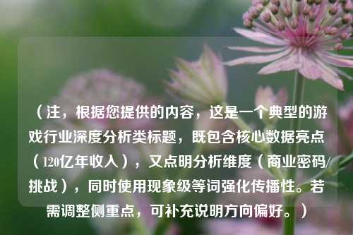《王者荣耀》的120亿年收入,是中国手***业的一个里程碑,但也提醒我们:没有永远的王者,只有不断的创新,腾讯能否通过技术升级、内容深耕和全球化布局,让《王者荣耀》突破200亿、300亿?让我们拭目以待。