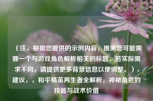 《和平精英》中的“再生者”是游戏内一种神秘的特殊角色设定,通常指在特定模式(如“暗夜危机”或创意工坊玩法)中拥有复活或特殊能力的敌对单位或玩家角色,这类角色可能具备死亡后复活、高速移动、感染他人等超常规技能,为游戏增添策略性和挑战性,例如在丧尸主题玩法中,再生者可能以变异生物形态出现,需团队协作击败;而在某些竞技模式中,玩家也可能通过道具或机制短暂获得再生能力,其设计旨在丰富战术维度,考验玩家对战场节奏和资源分配的掌控能力。