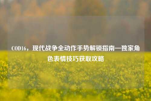 《使命召唤16:现代战争》(Call of Duty: Modern Warfare,简称COD16)作为系列重启之作,不仅带来了震撼的射击体验和丰富的多人游戏内容,还引入了一套完整的角色动作系统,为玩家提供了更多个性化表达的方式,在激烈的对战间隙,一个恰到好处的动作或表情往往能成为与队友沟通的独特方式,或是对对手的"友好问候",本文将全面解析COD16中各种动作的获取途径,帮助玩家解锁更多个性化表达方式,提升游戏体验。